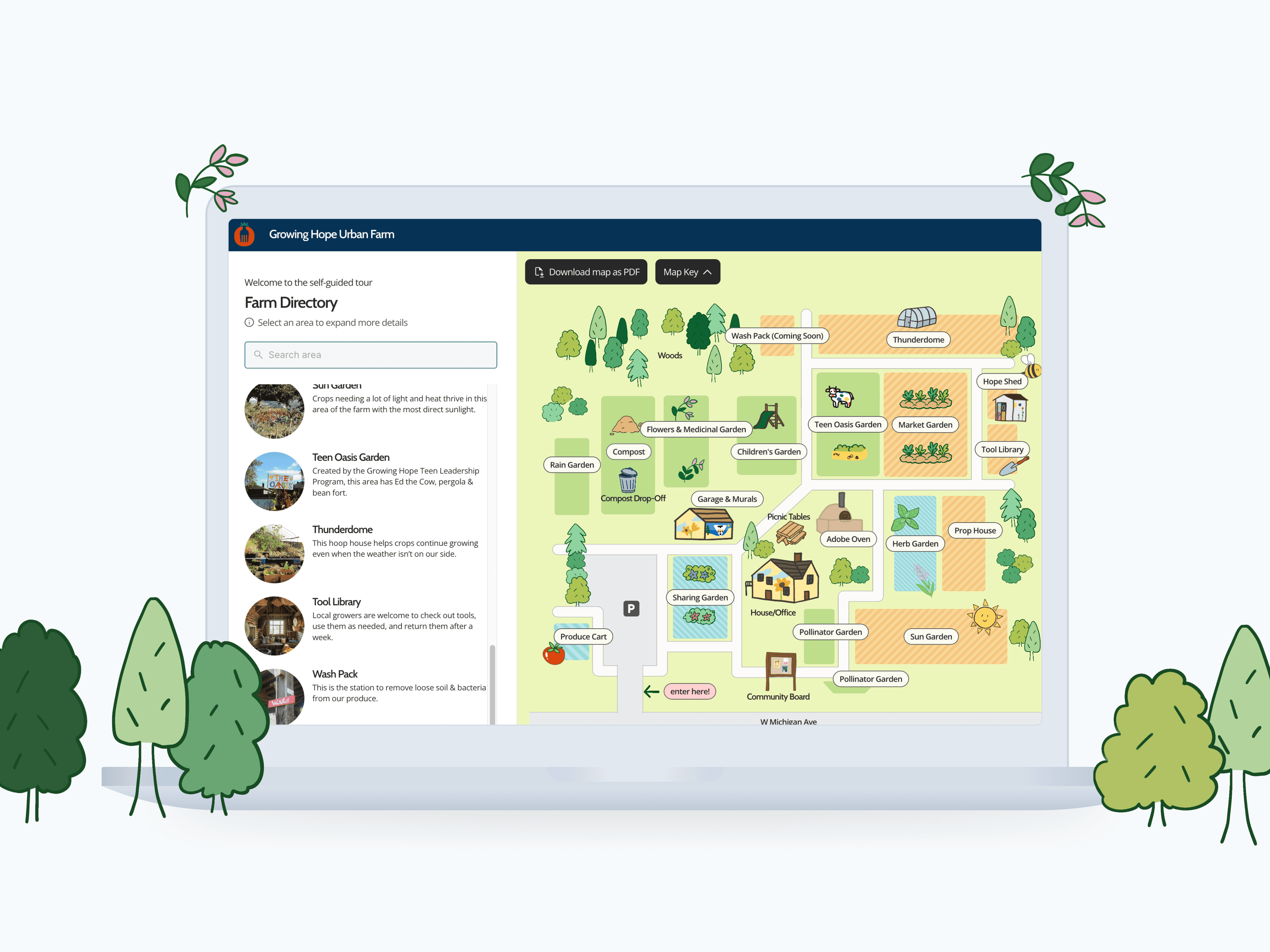 Interactive map of Growing Hope's urban farm to guide and empower community.