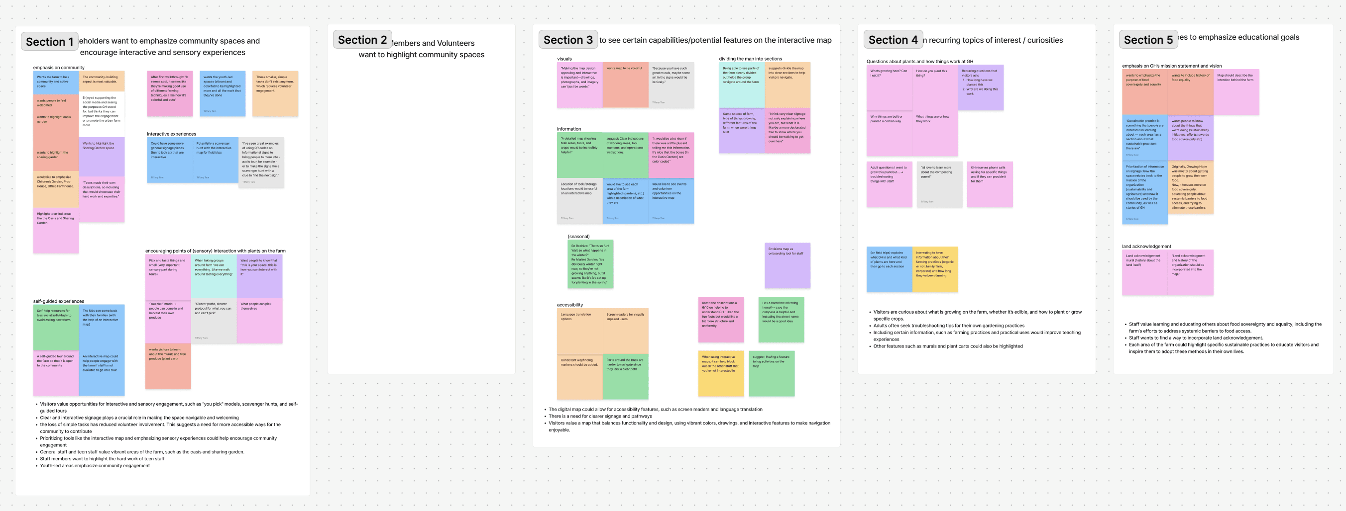 These questions helped identify the existing knowledge gaps within the staff, visitors, and volunteers, driving the goals for our design solution.
