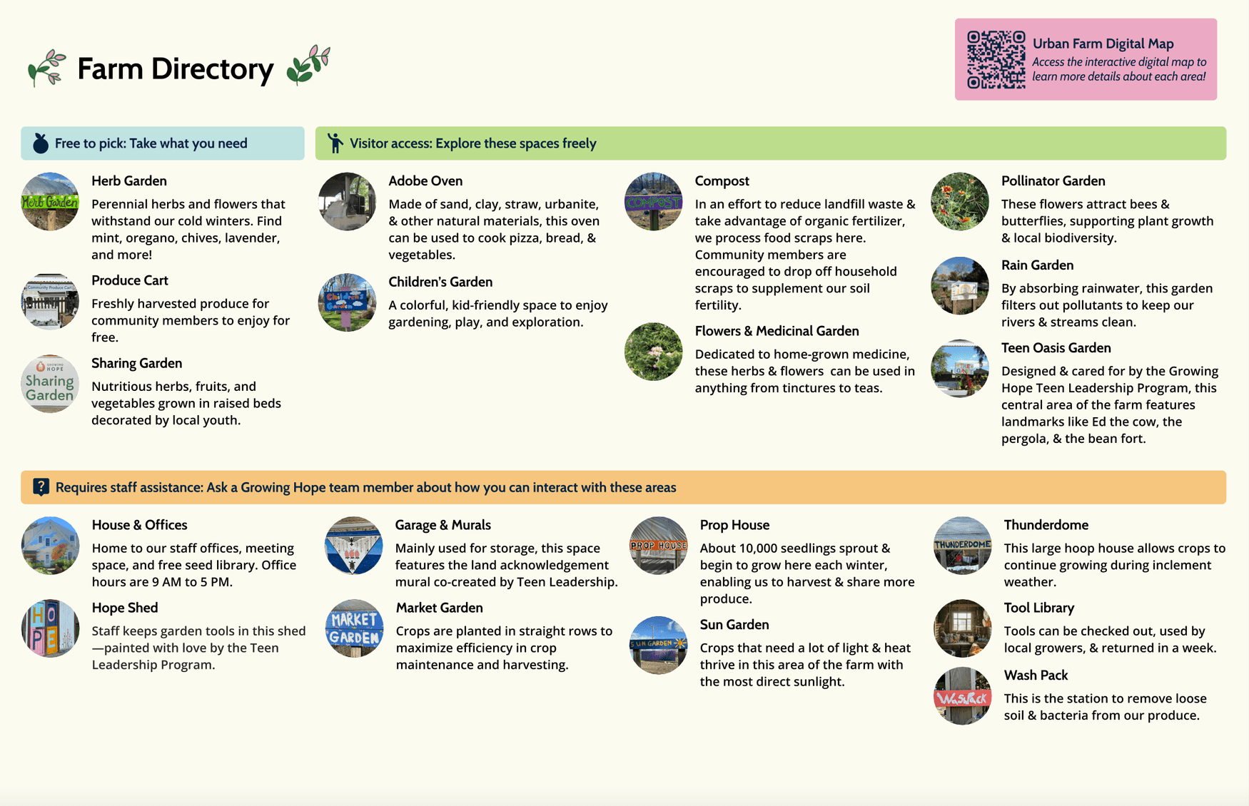 The physical map is laminated and available for visitors who come to Growing Hope's farm, ensuring digital and physical accessibility to access information on-site.